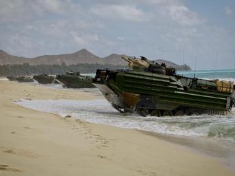 Keywords: bellows air force base bellowsairforcebase hawaii usa outdoor Amphibious Assualt Vehicles, with Battalion Landing Team, 15th Marine Expeditionary Unit, conduct an amphibious landing demonstration at Marine Corps Training Area Bellows, Hawaii May 19, 2015. The landing is part of Culebra Koa 15, an on-going joint sea-basing exercise taking place in Hawaii during the MARFORPAC-hosted U.S. Pacific Command Amphibious Leaders Symposium (PALS). PALS is designed to bring together senior leaders of allies and partners Marine Corps, naval infantries, and militaries spanning the Indo-Asia-Pacific region with interest in military amphibious capability development. This year, 22 nations sent representatives to observe the training. (U.S. Marine Corps photo by Cpl.Hilda Becerra) Amphibious Assualt Vehicles, with Battalion Landing Team, 15th Marine Expeditionary Unit, conduct an amphibious landing demonstration at Marine Corps Training Area Bellows, Hawaii May 19, 2015. The landing is part of Culebra Koa 15, an on-going joint sea-basing exercise taking place in Hawaii during the MARFORPAC-hosted U.S. Pacific Command Amphibious Leaders Symposium (PALS). PALS is designed to bring together senior leaders of allies and partners Marine Corps, naval infantries, and militaries spanning the Indo-Asia-Pacific region with interest in military amphibious capability development. This year, 22 nations sent representatives to observe the training. (U.S. Marine Corps photo by Cpl.Hilda Becerra)
