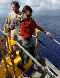 | Keywords: hawaiimarines marforpac comcam marforpaccomcam marinecorps pals15 pals15hawaii uspacom usns dahl (t-ark-312) usnsdahltark312 hawaii u.s.a. usa people vehicle outdoor oar boat Australian Navy Capt. Jay Bannister, prepares to board a launch craft to the USNS Montford Point (T-MPL-1) during the U.S. Pacific Command Amphibious Landing Symposium, May, 19, 2015. Senior military leaders of allies and partners visited Hawaii to participate in the U.S. Pacific Command Amphibious Leaders Symposium. (U.S. Marine Corps photo by Lance Cpl. Maximiliano Rosas/Not Reviewed) Australian Navy Capt. Jay Bannister, prepares to board a launch craft to the USNS Montford Point (T-MPL-1) during the U.S. Pacific Command Amphibious Landing Symposium, May, 19, 2015. Senior military leaders of allies and partners visited Hawaii to participate in the U.S. Pacific Command Amphibious Leaders Symposium. (U.S. Marine Corps photo by Lance Cpl. Maximiliano Rosas/Not Reviewed) |