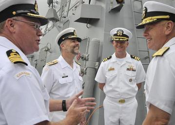 | Keywords: 150526-N-IU636-031 Royal Canadian Navy Rear Adm. William Truelove, commander, Maritime Forces Pacific (MARPAC) meets with Rear Adm. Rick Williams.jpg PEARL HARBOR May 26 2015 Royal Canadian Navy Rear Adm William Truelove commander Maritime Forces Pacific MARPAC second from left meets with Rear Adm Rick Williams commander of Navy Region Hawaii and Naval Surface Group Middle Pacific right and Cmdr Todd E Hutchison commanding officer of the guided-missile destroyer USS Michael Murphy DDG 112 Michael Murphy second from right while aboard Michael Murphy at Joint Base Pearl Harbor-Hickam During his visit aboard Michael Murphy Truelove presented Williams and Hutchison with the Canadian Forces ™ Unit Commendation The commendation was given in appreciation for the recovery efforts of Her Majesty ™s Canadian Ship HMCS Protecteur after suffering an engine fire several hundred miles off the coast of Hawaii during its transit back to Esquimalt British Columbia in February 2014 U S Navy photo by Mass Communication Specialist 2nd Class Johans Chavarro/Released https //www flickr com/photos/compacflt/18026348450/ 150526-N-IU636-031 2015-05-26 00 00 https //www flickr com/people/43397645 N06 U S Pacific Fleet Petty Officer 2nd Class Johans Chavarro/Navy Public Affairs Support Element Detachment Hawaii U S Navy photo PD-USGov-Military-Navy William Truelove Aboard USS Michael Murphy DDG-112 |