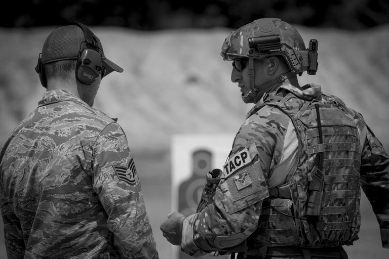 | Keywords: u.s. air force usairforce united states air force unitedstatesairforce usaf air national guard airnationalguard ang acc air combat command aircombatcommand tacp tactical air control party tacticalaircontrolparty jtac joint terminal attack controller jointterminalattackcontroller sf security forces securityforces security police securitypolice range weapons qualification course of fire courseoffire joint base mdl jointbasemdl catm combat arms combatarms military 177th fighter wing 177thfighterwing 227th air support operations squadron 227thairsupportoperationssquadron joint base mcguire-dix-lakehurst jointbasemcguiredixlakehurst n.j. nj usa public domain royalty free getty reuters ap blackandwhite monochrome people depth of field surreal outdoor black and white A combat arms instructor, left, from the New Jersey Air National Guard's 177th Security Forces Squadron gives some shooting advise to a student during live-fire training on Joint Base McGuire-Dix-Lakehurst, N.J., June 10, 2015. (U.S. Air National Guard photo by Tech. Sgt. Matt Hecht/Released) A combat arms instructor, left, from the New Jersey Air National Guard's 177th Security Forces Squadron gives some shooting advise to a student during live-fire training on Joint Base McGuire-Dix-Lakehurst, N.J., June 10, 2015. (U.S. Air National Guard photo by Tech. Sgt. Matt Hecht/Released) |