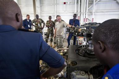 | Keywords: african air forces africanairforces african partnership flight africanpartnershipflight africom tour visit conference army aviation support facility armyaviationsupportfacility aasf uh-60a black hawk uh60ablackhawk black hawk blackhawk uh-60a uh60a uh-60 uh60 helicopter helicopters 1-150th assault helicopter battalion 1150thassaulthelicopterbattalion 1-150 ahb 1150ahb new jersey army national guard newjerseyarmynationalguard njarng new jersey national guard newjerseynationalguard njng army national guard armynationalguard arng soldier soldiers aviator aviators crew chief crewchief national guard nationalguard ng u.s. air forces in europe usairforcesineurope usafe u.s. air forces africa usairforcesafrica usafa maintenance logistics knowledge procedures regional military to military events regionalmilitarytomilitaryevents aviation capacity aviationcapacity enhance regional cooperation enhanceregionalcooperation cooperation increase interoperability increaseinteroperability interoperability africa angola burkina faso burkinafaso ghana mali niger nigeria senegal tunisia military united states air force unitedstatesairforce usaf air force airforce af joint base mcguire-dix-lakehurst jointbasemcguiredixlakehurst jbmdl n.j. nj new jersey newjersey aug. 31 2015 aug312015 photo by master sgt. mark c. olsen photobymastersgtmarkcolsen u.s. us Sgt. Doug Menut, center, UH-60A Black Hawk maintainer, briefs visiting African air force members touring the New Jersey Army National Guard’s Army Aviation Support Facility during an AFRICOM conference at Joint Base McGuire-Dix-Lakehurst, N.J., Aug. 31, 2015. The African Partnership Flight visit to the Facility is part of a U.S. Air Forces in Europe and U.S. Air Forces Africa program, which includes military representatives from Angola, Burkina Faso, Ghana, Mali, Niger, Nigeria, Senegal and Tunisia that emphasized increased maintenance and logistics knowledge and procedures. The program was created to conduct regional military to military events with African air forces to build aviation capacity, enhance regional cooperation and increase interoperability. (U.S. Air National Guard photo by Master Sgt. Mark C. Olsen/Released) Sgt. Doug Menut, center, UH-60A Black Hawk maintainer, briefs visiting African air force members touring the New Jersey Army National Guard’s Army Aviation Support Facility during an AFRICOM conference at Joint Base McGuire-Dix-Lakehurst, N.J., Aug. 31, 2015. The African Partnership Flight visit to the Facility is part of a U.S. Air Forces in Europe and U.S. Air Forces Africa program, which includes military representatives from Angola, Burkina Faso, Ghana, Mali, Niger, Nigeria, Senegal and Tunisia that emphasized increased maintenance and logistics knowledge and procedures. The program was created to conduct regional military to military events with African air forces to build aviation capacity, enhance regional cooperation and increase interoperability. (U.S. Air National Guard photo by Master Sgt. Mark C. Olsen/Released) |