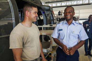 Keywords: african air forces africanairforces african partnership flight africanpartnershipflight africom tour visit conference army aviation support facility armyaviationsupportfacility aasf uh-60a black hawk uh60ablackhawk black hawk blackhawk uh-60a uh60a uh-60 uh60 helicopter helicopters 1-150th assault helicopter battalion 1150thassaulthelicopterbattalion 1-150 ahb 1150ahb new jersey army national guard newjerseyarmynationalguard njarng new jersey national guard newjerseynationalguard njng army national guard armynationalguard arng soldier soldiers aviator aviators crew chief crewchief national guard nationalguard ng u.s. air forces in europe usairforcesineurope usafe u.s. air forces africa usairforcesafrica usafa maintenance logistics knowledge procedures regional military to military events regionalmilitarytomilitaryevents aviation capacity aviationcapacity enhance regional cooperation enhanceregionalcooperation cooperation increase interoperability increaseinteroperability interoperability africa angola burkina faso burkinafaso ghana mali niger nigeria senegal tunisia military united states air force unitedstatesairforce usaf air force airforce af joint base mcguire-dix-lakehurst jointbasemcguiredixlakehurst jbmdl n.j. nj new jersey newjersey aug. 31 2015 aug312015 photo by master sgt. mark c. olsen photobymastersgtmarkcolsen u.s. us Visiting African air force members tour the New Jersey Army National Guard’s Army Aviation Support Facility during an AFRICOM conference at Joint Base McGuire-Dix-Lakehurst, N.J., Aug. 31, 2015. The African Partnership Flight visit to the Facility is part of a U.S. Air Forces in Europe and U.S. Air Forces Africa program, which includes military representatives from Angola, Burkina Faso, Ghana, Mali, Niger, Nigeria, Senegal and Tunisia that emphasized increased maintenance and logistics knowledge and procedures. The program was created to conduct regional military to military events with African air forces to build aviation capacity, enhance regional cooperation and increase interoperability. (U.S. Air National Guard photo by Master Sgt. Mark C. Olsen/Released) Visiting African air force members tour the New Jersey Army National Guard’s Army Aviation Support Facility during an AFRICOM conference at Joint Base McGuire-Dix-Lakehurst, N.J., Aug. 31, 2015. The African Partnership Flight visit to the Facility is part of a U.S. Air Forces in Europe and U.S. Air Forces Africa program, which includes military representatives from Angola, Burkina Faso, Ghana, Mali, Niger, Nigeria, Senegal and Tunisia that emphasized increased maintenance and logistics knowledge and procedures. The program was created to conduct regional military to military events with African air forces to build aviation capacity, enhance regional cooperation and increase interoperability. (U.S. Air National Guard photo by Master Sgt. Mark C. Olsen/Released)