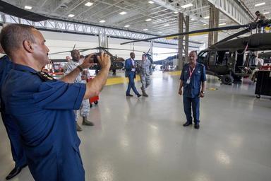 | Keywords: african air forces africanairforces african partnership flight africanpartnershipflight africom tour visit conference army aviation support facility armyaviationsupportfacility aasf uh-60a black hawk uh60ablackhawk black hawk blackhawk uh-60a uh60a uh-60 uh60 helicopter helicopters 1-150th assault helicopter battalion 1150thassaulthelicopterbattalion 1-150 ahb 1150ahb new jersey army national guard newjerseyarmynationalguard njarng new jersey national guard newjerseynationalguard njng army national guard armynationalguard arng soldier soldiers aviator aviators crew chief crewchief national guard nationalguard ng u.s. air forces in europe usairforcesineurope usafe u.s. air forces africa usairforcesafrica usafa maintenance logistics knowledge procedures regional military to military events regionalmilitarytomilitaryevents aviation capacity aviationcapacity enhance regional cooperation enhanceregionalcooperation cooperation increase interoperability increaseinteroperability interoperability africa angola burkina faso burkinafaso ghana mali niger nigeria senegal tunisia military united states air force unitedstatesairforce usaf air force airforce af joint base mcguire-dix-lakehurst jointbasemcguiredixlakehurst jbmdl n.j. nj new jersey newjersey aug. 31 2015 aug312015 photo by master sgt. mark c. olsen photobymastersgtmarkcolsen u.s. us Visiting African air force members tour the New Jersey Army National Guard’s Army Aviation Support Facility during an AFRICOM conference at Joint Base McGuire-Dix-Lakehurst, N.J., Aug. 31, 2015. The African Partnership Flight visit to the Facility is part of a U.S. Air Forces in Europe and U.S. Air Forces Africa program, which includes military representatives from Angola, Burkina Faso, Ghana, Mali, Niger, Nigeria, Senegal and Tunisia that emphasized increased maintenance and logistics knowledge and procedures. The program was created to conduct regional military to military events with African air forces to build aviation capacity, enhance regional cooperation and increase interoperability. (U.S. Air National Guard photo by Master Sgt. Mark C. Olsen/Released) Visiting African air force members tour the New Jersey Army National Guard’s Army Aviation Support Facility during an AFRICOM conference at Joint Base McGuire-Dix-Lakehurst, N.J., Aug. 31, 2015. The African Partnership Flight visit to the Facility is part of a U.S. Air Forces in Europe and U.S. Air Forces Africa program, which includes military representatives from Angola, Burkina Faso, Ghana, Mali, Niger, Nigeria, Senegal and Tunisia that emphasized increased maintenance and logistics knowledge and procedures. The program was created to conduct regional military to military events with African air forces to build aviation capacity, enhance regional cooperation and increase interoperability. (U.S. Air National Guard photo by Master Sgt. Mark C. Olsen/Released) |