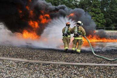 MAKE A MEME View Large Image Fire protection specialists with the 182nd Civil Engineer Squadron, Illinois Air National Guard, demonstrate how they extinguish jet fuel fires during a controlled burn at Wingman and Family Day at the 182nd Airlift Wing, Peoria, Ill., ...
