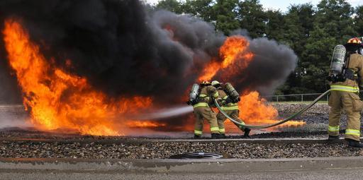Keywords: air force usaf 182 aw airlift wing peoria illinois ill ang national guard il angb ngb mobility command amc z northcom wingman family day resiliency fire protection specialist civil engineer squadron firefighter jet fuel controlled burn extinguish usa outdoor Fire protection specialists with the 182nd Civil Engineer Squadron, Illinois Air National Guard, demonstrate how they extinguish jet fuel fires during a controlled burn at Wingman and Family Day at the 182nd Airlift Wing, Peoria, Ill., Sept. 12, 2015. The event was organized to promote resiliency in Airmen and their friends and family. (U.S. Air National Guard photo by Staff Sgt. Lealan Buehrer/Released) Fire protection specialists with the 182nd Civil Engineer Squadron, Illinois Air National Guard, demonstrate how they extinguish jet fuel fires during a controlled burn at Wingman and Family Day at the 182nd Airlift Wing, Peoria, Ill., Sept. 12, 2015. The event was organized to promote resiliency in Airmen and their friends and family. (U.S. Air National Guard photo by Staff Sgt. Lealan Buehrer/Released)