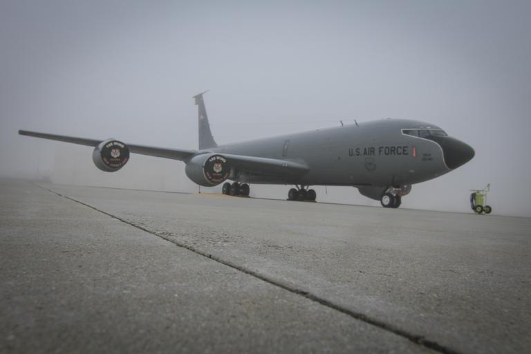 MAKE A MEME View Large Image Air Force KC-135 Stratotanker from the New Jersey Air National Guard's 108th Wing sits on a foggy flight line at Joint Base McGuire-Dix-Lakehurst, N.J., Sept. 19, 2015. (U.S. Air National Guard photo by Tech. Sgt. Matt Hecht/Released) A ...