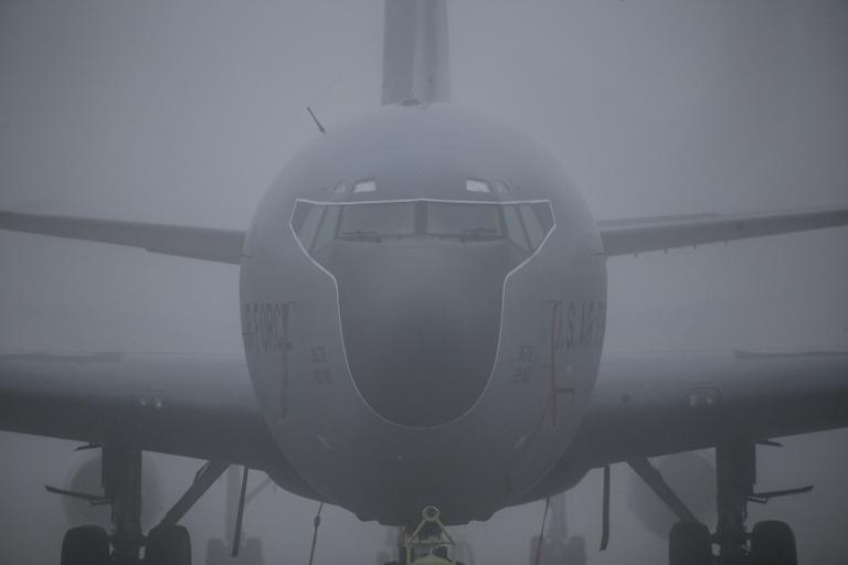MAKE A MEME View Large Image Air Force KC-135 Stratotanker from the New Jersey Air National Guard's 108th Wing sits on a foggy flight line at Joint Base McGuire-Dix-Lakehurst, N.J., Sept. 19, 2015. (U.S. Air National Guard photo by Tech. Sgt. Matt Hecht/Released) A ...