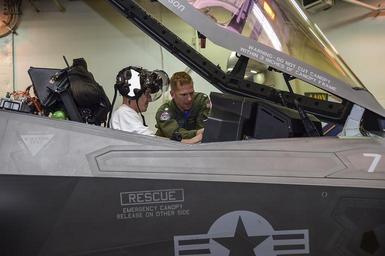 | Keywords: ike co capt. stephen t. koehler captstephentkoehler f-35 f35 vx 23 vx23 tour uss dwight d. eisenhower ussdwightdeisenhower atlantic ocean atlanticocean 151004-N-QS750-149. ATLANTIC OCEAN (Oct. 4, 2015) Capt. Stephen T. Koehler, commanding officer of USS Dwight D. Eisenhower (CVN 69), sits in the cockpit of an F-35C Lightning II carrier variant joint strike fighter assigned to the Salty Dogs of Air Test and Evaluation Squadron (VX) 23 in the hangar bay. The F-35C Lightning II Pax River Integrated Test Force is currently conducting follow-on sea trials aboard the Eisenhower. (U.S. Navy photo by Mass Communication Specialist 3rd Class Corey Dill) 151004-N-QS750-149. ATLANTIC OCEAN (Oct. 4, 2015) Capt. Stephen T. Koehler, commanding officer of USS Dwight D. Eisenhower (CVN 69), sits in the cockpit of an F-35C Lightning II carrier variant joint strike fighter assigned to the Salty Dogs of Air Test and Evaluation Squadron (VX) 23 in the hangar bay. The F-35C Lightning II Pax River Integrated Test Force is currently conducting follow-on sea trials aboard the Eisenhower. (U.S. Navy photo by Mass Communication Specialist 3rd Class Corey Dill) |