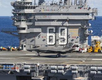 | Keywords: f-35 f35 f-35c f35c navy pax river itf paxriveritf nas patuxent river naspatuxentriver navair vx-23 vx23 pax river paxriver itf cf-03 cf03 cf-05 cf05 uss dwight d. eisenhower ussdwightdeisenhower cvn 69 cvn69 carrier naval aviation navalaviation joint strike fighter jointstrikefighter jsf atlantic ocean atlanticocean outdoor ATLANTIC OCEAN (Oct. 5, 2015) Lt. Chris “TJ” Karapostoles makes an arrested landing aboard USS Dwight D. Eisenhower (CVN 69) during the second phase of F-35 Lightning II developmental test (DT-II). Pax River ITF test pilots assigned to the Salty Dogs of Air Test and Evaluation Squadron (VX) 23 conducted carrier suitability and integration testing of the F-35C carrier variant Joint Strike Fighter aboard the Mighty IKE. (U.S. Navy photo courtesy Lockheed Martin photo by Andy Wolfe/Released) ATLANTIC OCEAN (Oct. 5, 2015) Lt. Chris “TJ” Karapostoles makes an arrested landing aboard USS Dwight D. Eisenhower (CVN 69) during the second phase of F-35 Lightning II developmental test (DT-II). Pax River ITF test pilots assigned to the Salty Dogs of Air Test and Evaluation Squadron (VX) 23 conducted carrier suitability and integration testing of the F-35C carrier variant Joint Strike Fighter aboard the Mighty IKE. (U.S. Navy photo courtesy Lockheed Martin photo by Andy Wolfe/Released) |