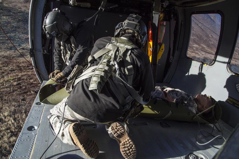 Keywords: rescue hoist training rescuehoisttraining alaska army national guard alaskaarmynationalguard army guard aviation armyguardaviation uh-60 black hawk helicopter uh60blackhawkhelicopter national guard nationalguard search and rescue searchandrescue joint base elmendorf-richardson jointbaseelmendorfrichardson alaska usa us Alaska Army National Guard Staff Sgt. Kevan Katkus, background, and Sgt. Bradley McKenzie, UH-60 Black Hawk helicopter crew chiefs assigned to 1st Battalion, 207th Aviation Regiment, recover a simulated casualty while conducting rescue hoist training on Joint Base Elmendorf-Richardson, Oct. 21, 2015. The casualty evacuation exercise was coordinated with Soldiers assigned to 1st Battalion (Airborne), 501st Infantry Regiment, to prepare for future emergencies and maintain operational readiness. (U.S. Air Force photo/Alejandro Pena) Alaska Army National Guard Staff Sgt. Kevan Katkus, background, and Sgt. Bradley McKenzie, UH-60 Black Hawk helicopter crew chiefs assigned to 1st Battalion, 207th Aviation Regiment, recover a simulated casualty while conducting rescue hoist training on Joint Base Elmendorf-Richardson, Oct. 21, 2015. The casualty evacuation exercise was coordinated with Soldiers assigned to 1st Battalion (Airborne), 501st Infantry Regiment, to prepare for future emergencies and maintain operational readiness. (U.S. Air Force photo/Alejandro Pena) |