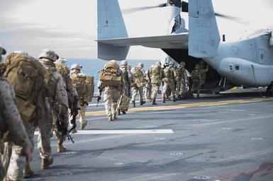 | Keywords: uss kearsarge (lhd 3); npase; purifoy; lhd 3; underway;turkish navy;egemen-15;usmc usskearsargelhd3npasepurifoylhd3underwayturkishnavyegemen15usmc aegean sea aegeansea outdoor 151025-N-YL073-068 AEGEAN SEA (Oct. 25, 2015) Members of the Turkish marines along with U.S. Marines attached to the 26th Marine Expeditionary Unit (26th MEU), board an MV-22 Osprey aboard the amphibious assault ship USS Kearsarge (LHD 3) during Egemen 2015, Oct. 25, 2015. Egemen is a Turkish-led and hosted amphibious exercise designed to increase tactical proficiencies and interoperability among participants. Kearsarge, deployed as part of the Kearsarge Amphibious Ready Group, is conducting naval operations in the U.S. 6th Fleet area of operations in support of U.S. national security interests in Europe. (U.S. Navy photo by Mass Communication Specialist 2nd Class Shamira Purifoy/Released) 151025-N-YL073-068 AEGEAN SEA (Oct. 25, 2015) Members of the Turkish marines along with U.S. Marines attached to the 26th Marine Expeditionary Unit (26th MEU), board an MV-22 Osprey aboard the amphibious assault ship USS Kearsarge (LHD 3) during Egemen 2015, Oct. 25, 2015. Egemen is a Turkish-led and hosted amphibious exercise designed to increase tactical proficiencies and interoperability among participants. Kearsarge, deployed as part of the Kearsarge Amphibious Ready Group, is conducting naval operations in the U.S. 6th Fleet area of operations in support of U.S. national security interests in Europe. (U.S. Navy photo by Mass Communication Specialist 2nd Class Shamira Purifoy/Released) |