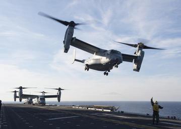 | Keywords: uss kearsarge (lhd 3); npase; preston; 26th marine expeditionary usskearsargelhd3npasepreston26thmarineexpeditionary aegean sea aegeansea usa uss kearsarge (lhd 3); npase; preston; 26th marine expeditionary unit; lhd 3; underway; egemen; usskearsargelhd3npasepreston26thmarineexpeditionaryunitlhd3underwayegemen outdoor airplane vehicle aircraft 151027-N-AX638-097 AEGEAN SEA (Oct. 27, 2015) Aviation Boatswain’s Mate (Handling) Airman Johnathan Jackson, from Augusta, Georgia, directs an MV-22 Osprey to take off from the flight deck of the amphibious assault ship USS Kearsarge (LHD 3) while participating in Exercise Egemen 2015, Oct. 27. Egemen is a Turkish-led and hosted amphibious exercise designed to increase tactical proficiencies and interoperability among participants. Kearsarge, deployed as part of the Kearsarge Amphibious Ready Group, is conducting naval operations in the U.S. 6th Fleet area of operations in support of U.S. national security interests in Europe. (U.S. Navy Photo by Mass Communication Specialist Seaman Tyler Preston/Released) 151027-N-AX638-097 AEGEAN SEA (Oct. 27, 2015) Aviation Boatswain’s Mate (Handling) Airman Johnathan Jackson, from Augusta, Georgia, directs an MV-22 Osprey to take off from the flight deck of the amphibious assault ship USS Kearsarge (LHD 3) while participating in Exercise Egemen 2015, Oct. 27. Egemen is a Turkish-led and hosted amphibious exercise designed to increase tactical proficiencies and interoperability among participants. Kearsarge, deployed as part of the Kearsarge Amphibious Ready Group, is conducting naval operations in the U.S. 6th Fleet area of operations in support of U.S. national security interests in Europe. (U.S. Navy Photo by Mass Communication Specialist Seaman Tyler Preston/Released) |