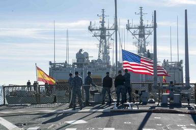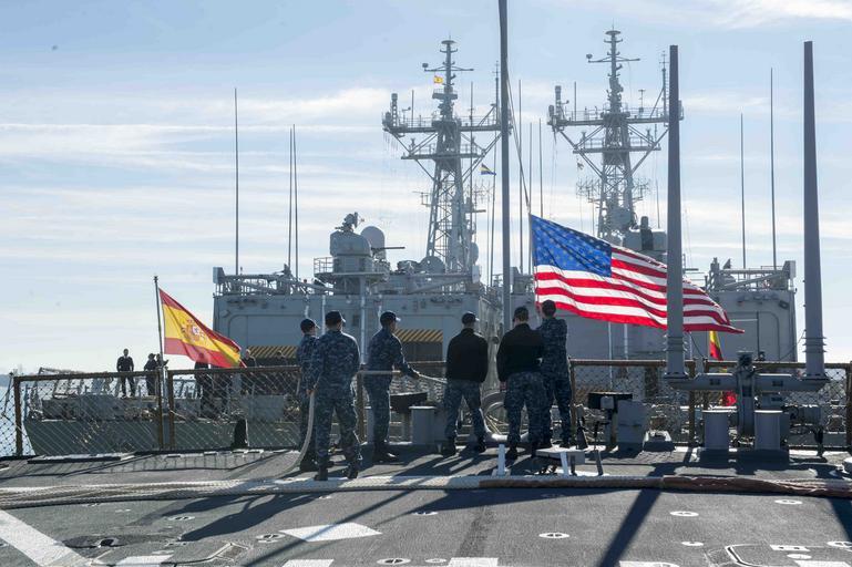| Keywords: us navy usnavy navy mc navymc npase-east npaseeast navy public affairs navypublicaffairs sailors europe 6th fleet 6thfleet uss donald cook ussdonaldcook ddg 75 ddg75 patrol snmg2 nato active endeavour activeendeavour naval station rota navalstationrota spain rota outdoor 151120-N-TC720-513 ROTA, Spain (Nov. 20, 2015) Sailors aboard USS Donald Cook (DDG 75) raise the national ensign as the ship moors pierside in Rota, Spain, Nov. 20, 2015. Donald Cook, an Arleigh Burke-class guided-missile destroyer, forward deployed to Rota, Spain is concluding a routine patrol in the U.S. 6th Fleet area of operations in support of U.S. national security interests in Europe. (U.S. Navy photo by Mass Communication Specialist 3rd Class Mat Murch/Released) 151120-N-TC720-513 ROTA, Spain (Nov. 20, 2015) Sailors aboard USS Donald Cook (DDG 75) raise the national ensign as the ship moors pierside in Rota, Spain, Nov. 20, 2015. Donald Cook, an Arleigh Burke-class guided-missile destroyer, forward deployed to Rota, Spain is concluding a routine patrol in the U.S. 6th Fleet area of operations in support of U.S. national security interests in Europe. (U.S. Navy photo by Mass Communication Specialist 3rd Class Mat Murch/Released) |