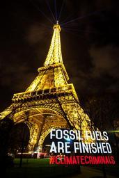 | Keywords: architecture tower night Paris, France, December 6, 2015 - As the UNFCCC COP21 climate talks move to their second week, a banner reading "Fossil Fuels are Finished" is painted next to the Eiffel Tower using an LED light tool. Paris, France, December 6, 2015 - As the UNFCCC COP21 climate talks move to their second week, a banner reading "Fossil Fuels are Finished" is painted next to the Eiffel Tower using an LED light tool. | ||||