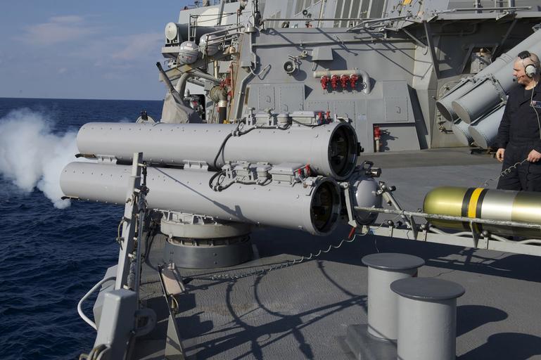Keywords: navy ddg 64 ddg64 uss carney usscarney sixth fleet sixthfleet cne-c6f cnec6f mediterranean 151218-N-FP878-093 MEDITERRANEAN SEA (Dec. 18, 2015) Sailors aboard USS Carney (DDG 64) fire an air slug during a MK32 mod 15 surface vessel torpedo tube maintenance check, Dec. 18, 2015. Carney, an Arleigh Burke-class guided-missile destroyer, forward deployed to Rota, Spain, is conducting a routine patrol in the U. S. 6th Fleet area of operations in support of U.S. national security interests in Europe. (U.S. Navy photo by Mass Communication Specialist 1st Class Theron J. Godbold/Released) 151218-N-FP878-093 MEDITERRANEAN SEA (Dec. 18, 2015) Sailors aboard USS Carney (DDG 64) fire an air slug during a MK32 mod 15 surface vessel torpedo tube maintenance check, Dec. 18, 2015. Carney, an Arleigh Burke-class guided-missile destroyer, forward deployed to Rota, Spain, is conducting a routine patrol in the U. S. 6th Fleet area of operations in support of U.S. national security interests in Europe. (U.S. Navy photo by Mass Communication Specialist 1st Class Theron J. Godbold/Released) |