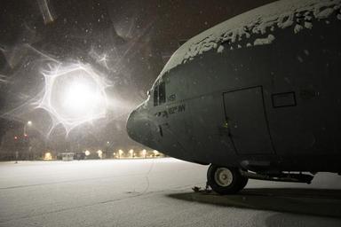 MAKE A MEME View Large Image Snow falls on a C-130 Hercules aircraft assigned to the 182nd Airlift Wing, Illinois Air National Guard, in Peoria, Ill., Dec. 30, 2015. That day’s snow was the first measurable snowfall since a record 4.6 inches fell on Nov. 21. (U.S. ...