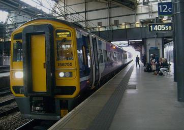 Keywords: 158755 Leeds.JPG Northern Rail refurbished Class 158 No 158755 at Leeds Own 2008-07-14 Peter Skuce Trains at Leeds railway station British Rail Class 158s of Northern Rail 158755 British Rail Class 158s in Northern Rail livery 158755