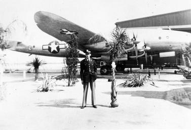 | Keywords: c-69 c69 blackandwhite monochrome black and white Lt. Floyd L. Vissat at Lockheed, Burbank in 1944. With C-69 Constellation in back. Vissat was fellow ROTC grad with CM Daniels Lt. Floyd L. Vissat at Lockheed, Burbank in 1944. With C-69 Constellation in back. Vissat was fellow ROTC grad with CM Daniels |