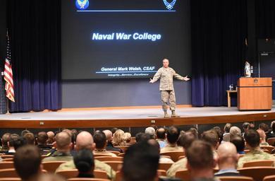 | Keywords: auditorium hall room 160201-N-ZD845-014 NEWPORT, R.I. (Feb. 1, 2016) Gen. Mark Welsh III, Air Force chief of staff, speaks with U.S. Naval War College students, faculty and staff during a visit to the college, Feb. 1. During his presentation, Welsh addressed current issues facing the military and provided a question and answer session for those in attendance. (U.S. Navy photo by Daniel S. Marciniak/Released) 160201-N-ZD845-014 NEWPORT, R.I. (Feb. 1, 2016) Gen. Mark Welsh III, Air Force chief of staff, speaks with U.S. Naval War College students, faculty and staff during a visit to the college, Feb. 1. During his presentation, Welsh addressed current issues facing the military and provided a question and answer session for those in attendance. (U.S. Navy photo by Daniel S. Marciniak/Released) |