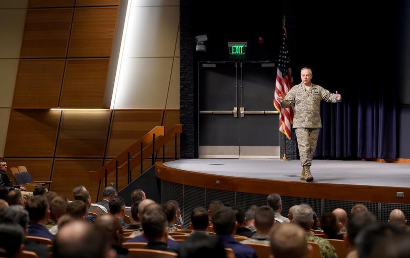 | Keywords: hall room indoor 160201-N-ZD845-014 NEWPORT, R.I. (Feb. 1, 2016) Gen. Mark Welsh III, Air Force chief of staff, speaks with U.S. Naval War College students, faculty and staff during a visit to the college, Feb. 1. During his presentation, Welsh addressed current issues facing the military and provided a question and answer session for those in attendance. (U.S. Navy photo by Daniel S. Marciniak/Released) 160201-N-ZD845-014 NEWPORT, R.I. (Feb. 1, 2016) Gen. Mark Welsh III, Air Force chief of staff, speaks with U.S. Naval War College students, faculty and staff during a visit to the college, Feb. 1. During his presentation, Welsh addressed current issues facing the military and provided a question and answer session for those in attendance. (U.S. Navy photo by Daniel S. Marciniak/Released) |