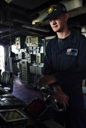 | Keywords: navy mediterranean uss carney usscarney ddg 64 ddg64 cne-c6f cnec6f sixth fleet sixthfleet indoor 160219-N-FP878-069 MEDITERRANEAN SEA (Feb. 19, 2016) Seaman Timothy Hagen, from Redwood City, California, stands helm watch aboard USS Carney (DDG 64) Feb. 19, 2016. Carney, an Arleigh Burke-class guided-missile destroyer, forward deployed to Rota, Spain, is conducting a routine patrol in the U. S. 6th Fleet area of operations in support of U.S. national security interests in Europe. (U.S. Navy photo by Mass Communication Specialist 1st Class Theron J. Godbold/Released) 160219-N-FP878-069 MEDITERRANEAN SEA (Feb. 19, 2016) Seaman Timothy Hagen, from Redwood City, California, stands helm watch aboard USS Carney (DDG 64) Feb. 19, 2016. Carney, an Arleigh Burke-class guided-missile destroyer, forward deployed to Rota, Spain, is conducting a routine patrol in the U. S. 6th Fleet area of operations in support of U.S. national security interests in Europe. (U.S. Navy photo by Mass Communication Specialist 1st Class Theron J. Godbold/Released) |