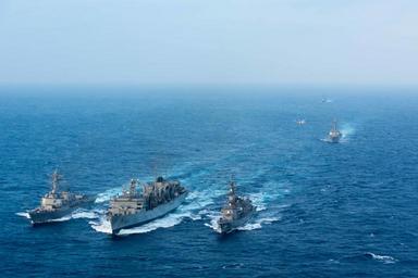 Keywords: uss john c. stennis ussjohncstennis cvn 74 cvn74 uss stockdale ussstockdale philippine sea philippinesea vehicle boat outdoor sea 160222-N-BR087-643 PHILIPPINE SEA (Feb. 22, 2016) - Japanese Maritime Self-Defense Force Murasame-class destroyer JDS Samidare (DD-106) and the guided-missile destroyer USS Stockdale (DDG 106) receive an advanced biofuel mixture from the fast combat support ship USNS Rainier (T-AOE 7) during a replenishment at sea while the guided-missile destroyer USS Chung-Hoon (DDG 93) and the guided-missile cruiser USS Mobile Bay (CG 53) approach from behind. Providing a ready force supporting security and stability in the Indo-Asia-Pacific, the John C. Stennis Strike Group is operating as part of the Great Green Fleet on a regularly scheduled 7th Fleet deployment. (U.S. Navy photo by Mass Communication Specialist Seaman Cole C. Pielop/Released) 160222-N-BR087-643 PHILIPPINE SEA (Feb. 22, 2016) - Japanese Maritime Self-Defense Force Murasame-class destroyer JDS Samidare (DD-106) and the guided-missile destroyer USS Stockdale (DDG 106) receive an advanced biofuel mixture from the fast combat support ship USNS Rainier (T-AOE 7) during a replenishment at sea while the guided-missile destroyer USS Chung-Hoon (DDG 93) and the guided-missile cruiser USS Mobile Bay (CG 53) approach from behind. Providing a ready force supporting security and stability in the Indo-Asia-Pacific, the John C. Stennis Strike Group is operating as part of the Great Green Fleet on a regularly scheduled 7th Fleet deployment. (U.S. Navy photo by Mass Communication Specialist Seaman Cole C. Pielop/Released)