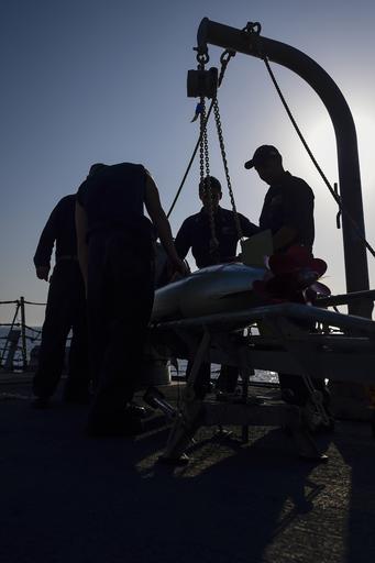 Keywords: select 160226-N-FP878-112 MEDITERRANEAN SEA (Feb. 26, 2016) Sailors load a mark 46 torpedo into a mark 32 surface vessel torpedo tube aboard USS Carney (DDG 64) Feb. 26, 2016. Carney, an Arleigh Burke-class guided-missile destroyer, forward deployed to Rota, Spain, is conducting a routine patrol in the U. S. 6th Fleet area of operations in support of U.S. national security interests in Europe. (U.S. Navy photo by Mass Communication Specialist 1st Class Theron J. Godbold/Released) 160226-N-FP878-112 MEDITERRANEAN SEA (Feb. 26, 2016) Sailors load a mark 46 torpedo into a mark 32 surface vessel torpedo tube aboard USS Carney (DDG 64) Feb. 26, 2016. Carney, an Arleigh Burke-class guided-missile destroyer, forward deployed to Rota, Spain, is conducting a routine patrol in the U. S. 6th Fleet area of operations in support of U.S. national security interests in Europe. (U.S. Navy photo by Mass Communication Specialist 1st Class Theron J. Godbold/Released) |