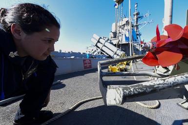 Keywords: navy mediterranean uss carney usscarney ddg 64 ddg64 cne-c6f cnec6f sixth fleet sixthfleet 160301-N-FP878-017 MEDITERRANEAN SEA (March 1, 2016) Fire Controlman 1st Class Marisol Erving, from Attleboro, Massachusetts, loads a mark 46 torpedo into a mark 32 surface vessel torpedo tube USS Carney (DDG 64) March 1, 2016. Carney, an Arleigh Burke-class guided-missile destroyer, forward deployed to Rota, Spain, is conducting a routine patrol in the U. S. 6th Fleet area of operations in support of U.S. national security interests in Europe. (U.S. Navy photo by Mass Communication Specialist 1st Class Theron J. Godbold/Released) 160301-N-FP878-017 MEDITERRANEAN SEA (March 1, 2016) Fire Controlman 1st Class Marisol Erving, from Attleboro, Massachusetts, loads a mark 46 torpedo into a mark 32 surface vessel torpedo tube USS Carney (DDG 64) March 1, 2016. Carney, an Arleigh Burke-class guided-missile destroyer, forward deployed to Rota, Spain, is conducting a routine patrol in the U. S. 6th Fleet area of operations in support of U.S. national security interests in Europe. (U.S. Navy photo by Mass Communication Specialist 1st Class Theron J. Godbold/Released)