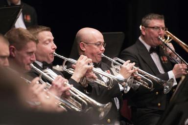 | Keywords: navy navy band navyband concert band concertband tour cornet u.s. navy band usnavyband u.s. navy usnavy music band harp people brass instrument indoor BUFFALO, NY (Mar. 1, 2016) Principal trumpet instrumentalist Senior Chief Musician Robert Couto of Bedford, Mass. leads the brass section at Shea's Buffalo Theatre Tuesday evening. The U.S. Navy Band is on a 25-day tour of the northeastern United States. (U.S. Navy photo by Chief Musician Melissa Bishop/Released) BUFFALO, NY (Mar. 1, 2016) Principal trumpet instrumentalist Senior Chief Musician Robert Couto of Bedford, Mass. leads the brass section at Shea's Buffalo Theatre Tuesday evening. The U.S. Navy Band is on a 25-day tour of the northeastern United States. (U.S. Navy photo by Chief Musician Melissa Bishop/Released) |