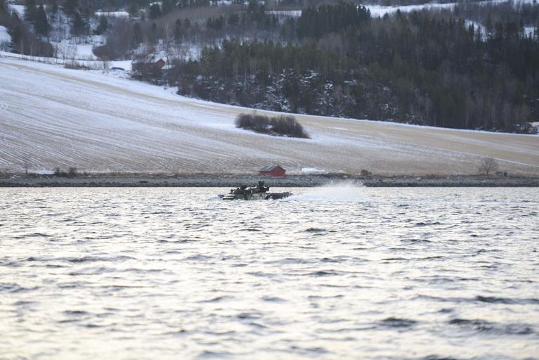 | Keywords: select outdoor 160301-N-ZZ999-101 NORTH SEA (March 1, 2016) A amphibious assault vehicles (AAV) surveys the beach after departing the well deck of the Whidbey Island-class dock landing ship USS Fort McHenry (LSD 43) while rehearsing for the first amphibious assault of Exercise Cold Response 2016 (CDR 16). CDR 16 involves maritime, land and air operation training and focuses on naval and amphibious operations transitioning to ground maneuver. The location in central Norway provides an extreme cold-weather environment for the 12 participating countries to collectively develop tactics, techniques and procedures and increase interoperability. (U.S. Navy photo by Mass Communication Specialist Seaman Apprentice Daniel C. Coxwest/Released) 160301-N-ZZ999-101 NORTH SEA (March 1, 2016) A amphibious assault vehicles (AAV) surveys the beach after departing the well deck of the Whidbey Island-class dock landing ship USS Fort McHenry (LSD 43) while rehearsing for the first amphibious assault of Exercise Cold Response 2016 (CDR 16). CDR 16 involves maritime, land and air operation training and focuses on naval and amphibious operations transitioning to ground maneuver. The location in central Norway provides an extreme cold-weather environment for the 12 participating countries to collectively develop tactics, techniques and procedures and increase interoperability. (U.S. Navy photo by Mass Communication Specialist Seaman Apprentice Daniel C. Coxwest/Released) |