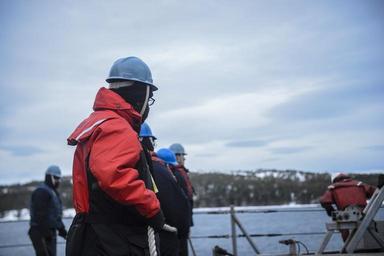| Keywords: outdoor 160303-N-ZZ999-013 NORTH SEA (March 3, 2016) Sailors aboard the Whidbey Island-class dock landing ship USS Fort McHenry (LSD 43) maintain thier grip on a line in order to stabilize a patrol boat while loading it back on boad during Exercise Cold Response 2016 (CDR 16). CDR 16 involves maritime, land and air operation training and focuses on naval and amphibious operations transitioning to ground maneuver. The location in central Norway provides an extreme cold-weather environment for the 12 participating countries to collectively develop tactics, techniques and procedures and increase interoperability. (U.S. Navy photo by Mass Communication Specialist Seaman Apprentice Daniel C. Coxwest/ Released) 160303-N-ZZ999-013 NORTH SEA (March 3, 2016) Sailors aboard the Whidbey Island-class dock landing ship USS Fort McHenry (LSD 43) maintain thier grip on a line in order to stabilize a patrol boat while loading it back on boad during Exercise Cold Response 2016 (CDR 16). CDR 16 involves maritime, land and air operation training and focuses on naval and amphibious operations transitioning to ground maneuver. The location in central Norway provides an extreme cold-weather environment for the 12 participating countries to collectively develop tactics, techniques and procedures and increase interoperability. (U.S. Navy photo by Mass Communication Specialist Seaman Apprentice Daniel C. Coxwest/ Released) |