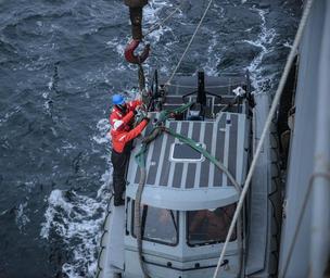 | Keywords: outdoor 160303-N-ZZ999-025 NORTH SEA (March 3, 2016 Sailors aboard the Whidbey Island-class dock landing ship USS Fort McHenry (LSD 43) connect a patrol boat to the crane hook in order to load it back on boad during Exercise Cold Response 2016 (CDR 16). CDR 16 involves maritime, land and air operation training and focuses on naval and amphibious operations transitioning to ground maneuver. The location in central Norway provides an extreme cold-weather environment for the 12 participating countries to collectively develop tactics, techniques and procedures and increase interoperability. (U.S. Navy photo by Mass Communication Specialist Seaman Apprentice Daniel C. Coxwest/ Released) 160303-N-ZZ999-025 NORTH SEA (March 3, 2016 Sailors aboard the Whidbey Island-class dock landing ship USS Fort McHenry (LSD 43) connect a patrol boat to the crane hook in order to load it back on boad during Exercise Cold Response 2016 (CDR 16). CDR 16 involves maritime, land and air operation training and focuses on naval and amphibious operations transitioning to ground maneuver. The location in central Norway provides an extreme cold-weather environment for the 12 participating countries to collectively develop tactics, techniques and procedures and increase interoperability. (U.S. Navy photo by Mass Communication Specialist Seaman Apprentice Daniel C. Coxwest/ Released) |