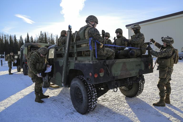 Keywords: 4th law enforcement battalion 4thlawenforcementbattalion mout military operation on urban terrain militaryoperationonurbanterrain military police militarypolice joint base elmendorf-richardson jointbaseelmendorfrichardson alaska usa us outdoor U.S. Marines assigned to Detachment Military Police Company D, 4th Law Enforcement Battalion, prepare to convoy to Baumeister City military operations on urban terrain (MOUT) complex at Joint Base Elmendorf-Richardson, Alaska, March 6, 2016. The MOUT training prepared the Marines for their upcoming deployment to Serbia where they will serve as military police advisors. (U.S. Air Force photo/Alejandro Peña) U.S. Marines assigned to Detachment Military Police Company D, 4th Law Enforcement Battalion, prepare to convoy to Baumeister City military operations on urban terrain (MOUT) complex at Joint Base Elmendorf-Richardson, Alaska, March 6, 2016. The MOUT training prepared the Marines for their upcoming deployment to Serbia where they will serve as military police advisors. (U.S. Air Force photo/Alejandro Peña) |