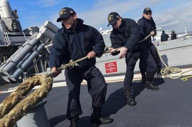 | Keywords: navy mediterranean uss carney usscarney ddg 64 ddg64 cne-c6f cnec6f sixth fleet sixthfleet outdoor 160308-N-FP878-166 PALMA DE MALLORCA, Spain (March 8, 2016) Sailors heave a line aboard USS Carney (DDG 64) while mooring in Palma De Mallorca, Spain March 8, 2016. Carney, an Arleigh Burke-class guided-missile destroyer, forward deployed to Rota, Spain, is conducting a routine patrol in the U. S. 6th Fleet area of operations in support of U.S. national security interests in Europe. (U.S. Navy photo by Mass Communication Specialist 1st Class Theron J. Godbold/Released) 160308-N-FP878-166 PALMA DE MALLORCA, Spain (March 8, 2016) Sailors heave a line aboard USS Carney (DDG 64) while mooring in Palma De Mallorca, Spain March 8, 2016. Carney, an Arleigh Burke-class guided-missile destroyer, forward deployed to Rota, Spain, is conducting a routine patrol in the U. S. 6th Fleet area of operations in support of U.S. national security interests in Europe. (U.S. Navy photo by Mass Communication Specialist 1st Class Theron J. Godbold/Released) |