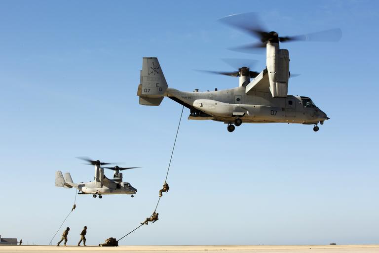 | Keywords: 0311 1/8 18 1/8 b co 18bco 1st battalion 8th marines 1stbattalion8thmarines 1st bn 8th mar 1stbn8thmar 8th marine regiment 8thmarineregiment africa bravo co. bravoco combat camera combatcamera comcam eucom europe fast rope fastrope grunt infantry marine medium tiltrotor squadron 263 marinemediumtiltrotorsquadron263 naval station rota navalstationrota rota spain special purpose marine air-ground task force specialpurposemarineairgroundtaskforce special purpose marine air-ground task force-crisis response-afr specialpurposemarineairgroundtaskforcecrisisresponseafr spmagtf-cr-af spmagtfcraf u.s. european command useuropeancommand u.s. marine usmarine u.s. marines usmarines usmc vmm 263 vmm263 es outdoor airplane vehicle aircraft U.S. Marines with Bravo company, 1st Battalion, 8th Marine Regiment, Special-Purpose Marine Air-Ground Task Force-Crisis Response- Africa (SPMAGTF-CR-AF) fast rope from an MV-22 Osprey with Marine Medium Tiltrotor Squadron 263, at Naval Station Rota, Spain, Mar. 10, 2016. SPMAGTF-CR-AF Marines are specialized in fast-roping which was an insertion method that can be utilized to access an area during a possible crisis or embassy reinforcement that may be otherwise inaccessible by landing. (U.S. Marine Corps photo by Sgt. Kassie L. McDole) U.S. Marines with Bravo company, 1st Battalion, 8th Marine Regiment, Special-Purpose Marine Air-Ground Task Force-Crisis Response- Africa (SPMAGTF-CR-AF) fast rope from an MV-22 Osprey with Marine Medium Tiltrotor Squadron 263, at Naval Station Rota, Spain, Mar. 10, 2016. SPMAGTF-CR-AF Marines are specialized in fast-roping which was an insertion method that can be utilized to access an area during a possible crisis or embassy reinforcement that may be otherwise inaccessible by landing. (U.S. Marine Corps photo by Sgt. Kassie L. McDole) |