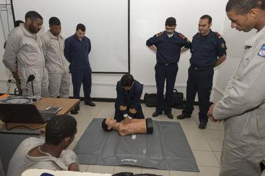 | Keywords: u.s. 6th fleet us6thfleet africa partnership station africapartnershipstation obangame express obangameexpress saharan express saharanexpress obse dakar senegal dakarsenegal dakar senegal 160315-N-ZE250-113 DAKAR, Senegal (March15, 2016) Senegalese navy and Cape Verde coast guard sailors receive CPR training from the Royal Moroccan navy during Obangame/Saharan Express 2016 (OESE16) in Dakar, Senegal March 15, 2015. OESE16, one of three African regional express series exercises facilitated by U.S. Naval Forces Europe-Africa/U.S. 6th Fleet, seeks to increase regional cooperation, maritime domain awareness, information sharing practices and improve interoperability among participating forces in order to enhance maritime security and regional economic stability. (U.S. Navy photo by Mass Communication Specialist 3rd Class Weston Jones/Released) 160315-N-ZE250-113 DAKAR, Senegal (March15, 2016) Senegalese navy and Cape Verde coast guard sailors receive CPR training from the Royal Moroccan navy during Obangame/Saharan Express 2016 (OESE16) in Dakar, Senegal March 15, 2015. OESE16, one of three African regional express series exercises facilitated by U.S. Naval Forces Europe-Africa/U.S. 6th Fleet, seeks to increase regional cooperation, maritime domain awareness, information sharing practices and improve interoperability among participating forces in order to enhance maritime security and regional economic stability. (U.S. Navy photo by Mass Communication Specialist 3rd Class Weston Jones/Released) |