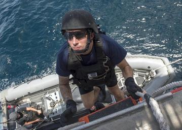 | Keywords: africa partnership station; africa partnership station 2016; aps africapartnershipstationafricapartnershipstation2016aps gulf of guinea gulfofguinea africa partnership station; africa partnership station 2016; aps16; aps; c6f; usns; spearhead; navy; partnership; military sealift command; u.s. navy; navy; obangame_sahara express 2016 africapartnershipstationafricapartnershipstation2016aps16apsc6fusnsspearheadnavypartnershipmilitarysealiftcommandusnavynavyobangamesaharaexpress2016 outdoor 160321-N-QF605-006 GULF OF GUINEA (March 21, 2016) - Ship's Serviceman Seaman Dylan Smith-Boccadoro, a search-and-rescue swimmer, descends a Jacob's ladder aboard USNS Spearhead (T-EPF 1), during Exercise Obangame/Saharan express 2016, March 21. Obangame/Saharan Express, one of three African regional express series exercises facilitated by U.S. Naval Forces Europe-Africa/U.S. 6th Fleet, seeks to increase regional cooperation, maritime domain awareness, information sharing practices and improve interoperability among participating forces in order to enhance maritime security and regional economic stability. (U.S. Navy photo by Mass Communication Specialist 1st Class Amanda Dunford/Released) 160321-N-QF605-006 GULF OF GUINEA (March 21, 2016) - Ship's Serviceman Seaman Dylan Smith-Boccadoro, a search-and-rescue swimmer, descends a Jacob's ladder aboard USNS Spearhead (T-EPF 1), during Exercise Obangame/Saharan express 2016, March 21. Obangame/Saharan Express, one of three African regional express series exercises facilitated by U.S. Naval Forces Europe-Africa/U.S. 6th Fleet, seeks to increase regional cooperation, maritime domain awareness, information sharing practices and improve interoperability among participating forces in order to enhance maritime security and regional economic stability. (U.S. Navy photo by Mass Communication Specialist 1st Class Amanda Dunford/Released) |