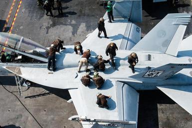 | Keywords: uss john c. stennis ussjohncstennis cvn 74 cvn74 waters surrounding the korean peninsula waterssurroundingthekoreanpeninsula outdoor 160323-N-XX566-087 WATERS SURROUNDING THE KOREAN PENINSULA (March 23, 2016) Sailors clean an F/A-18F Super Hornet assigned to the Black Aces of Strike Fighter Squadron (VFA) 41 on the flight deck of the aircraft carrier USS John C. Stennis (CVN 74). Providing a ready force supporting security and stability in the Indo-Asia-Pacific, John C. Stennis is operating as part of the Great Green Fleet on a regularly scheduled U.S. 7th Fleet deployment. (U.S. Navy photo by Mass Communication Specialist 3rd Class Andre T. Richard/Released) 160323-N-XX566-087 WATERS SURROUNDING THE KOREAN PENINSULA (March 23, 2016) Sailors clean an F/A-18F Super Hornet assigned to the Black Aces of Strike Fighter Squadron (VFA) 41 on the flight deck of the aircraft carrier USS John C. Stennis (CVN 74). Providing a ready force supporting security and stability in the Indo-Asia-Pacific, John C. Stennis is operating as part of the Great Green Fleet on a regularly scheduled U.S. 7th Fleet deployment. (U.S. Navy photo by Mass Communication Specialist 3rd Class Andre T. Richard/Released) |