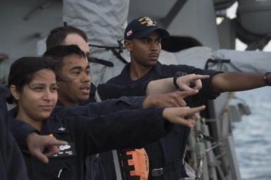 | Keywords: u.s. navy usnavy sailor uss porter (ddg 78) ussporterddg78 meditteranean sea meditteraneansea man-overboard manoverboard people groupshot 160325-N-FQ994-332 MEDITERRANEAN SEA (March 25, 2016) Sailors aboard USS Porter (DDG 78) point to the location of a simulated man overboard March 25, 2016. Porter, an Arleigh Burke-class guided-missile destroyer, forward-deployed to Rota, Spain, is conducting a routine patrol in the U.S. 6th Fleet area of operations in support of U.S. national security interests in Europe. (U.S. Navy Photo by Mass Communication Specialist 3rd Class Robert S. Price/Released) 160325-N-FQ994-332 MEDITERRANEAN SEA (March 25, 2016) Sailors aboard USS Porter (DDG 78) point to the location of a simulated man overboard March 25, 2016. Porter, an Arleigh Burke-class guided-missile destroyer, forward-deployed to Rota, Spain, is conducting a routine patrol in the U.S. 6th Fleet area of operations in support of U.S. national security interests in Europe. (U.S. Navy Photo by Mass Communication Specialist 3rd Class Robert S. Price/Released) |