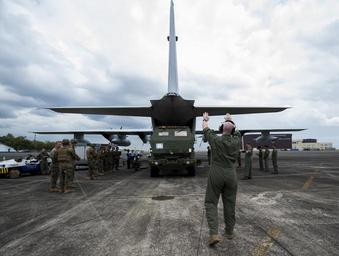 | Keywords: afp asian pacific asianpacific balikatan bk16 marine corps marinecorps marines pacific marine pacificmarine pacific rebalance pacificrebalance shoulder to shoulder shouldertoshoulder us air force usairforce usarmy usnavy usphl clark air base clarkairbase philippines ph outdoor U.S. Marine Corps Staff Sgt. Bill Fenton guides the members of Fox Platoon, 2nd Battalion, 14th Marine Regiment as they load a M142 High Mobility Rocket Artillery System onto a KC-130J Super Hercules aircraft during Balikatan 16 (BK16) at Clark Air Base, Philippines, April 6, 2016. BK16 was an annual bilateral training exercise between the Armed Forces of the U.S. and Philippines forces intended to promote cooperation and contribute to regional stability and security. (U.S. Air Force photo by Tech. Sgt. Araceli Alarcon) U.S. Marine Corps Staff Sgt. Bill Fenton guides the members of Fox Platoon, 2nd Battalion, 14th Marine Regiment as they load a M142 High Mobility Rocket Artillery System onto a KC-130J Super Hercules aircraft during Balikatan 16 (BK16) at Clark Air Base, Philippines, April 6, 2016. BK16 was an annual bilateral training exercise between the Armed Forces of the U.S. and Philippines forces intended to promote cooperation and contribute to regional stability and security. (U.S. Air Force photo by Tech. Sgt. Araceli Alarcon) |