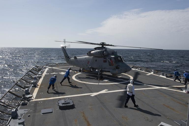 | Keywords: u.s. navy usnavy navy mc navymc nsa naples nsanaples npase-east npaseeast navy public affairs navypublicaffairs sailors marines europe italy nato outdoor vehicle aircraft 160411-N-TC720-209 BALTIC SEA(April 11, 2016) - Sailors aboard USS Donald Cook (DDG 75) run to remove chocks and chains from a Polish SH-2G Helicopter during flight quarters April 11, 2016. Donald Cook, an Arleigh Burke-class guided-missile destroyer, forward deployed to Rota, Spain is conducting a routine patrol in the U.S. 6th Fleet area of operations in support of U.S. national security interests in Europe. (U.S. Navy photo by Mass Communication Specialist 2nd Class Mat Murch/Released) 160411-N-TC720-209 BALTIC SEA(April 11, 2016) - Sailors aboard USS Donald Cook (DDG 75) run to remove chocks and chains from a Polish SH-2G Helicopter during flight quarters April 11, 2016. Donald Cook, an Arleigh Burke-class guided-missile destroyer, forward deployed to Rota, Spain is conducting a routine patrol in the U.S. 6th Fleet area of operations in support of U.S. national security interests in Europe. (U.S. Navy photo by Mass Communication Specialist 2nd Class Mat Murch/Released) |