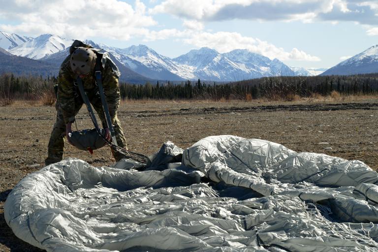 | Keywords: joint base elmendorf-richardson jointbaseelmendorfrichardson alaska usa outdoor landscape mountain Airmen and Soldiers perform static and free-fall parachute jumps out of UH-60 Black Hawk helicopters as part of Grizzly Breakup, a training exercise, at Malemute drop zone, Joint Base Elmendorf-Richardson, Alaska, April 18, 2016. Grizzly Breakup is a week-long operation where service members from seven special operations units, spanning multiple installations, participate in parachute jumps out of Black Hawks and C-17 Globemaster IIIs. Airmen and Soldiers perform static and free-fall parachute jumps out of UH-60 Black Hawk helicopters as part of Grizzly Breakup, a training exercise, at Malemute drop zone, Joint Base Elmendorf-Richardson, Alaska, April 18, 2016. Grizzly Breakup is a week-long operation where service members from seven special operations units, spanning multiple installations, participate in parachute jumps out of Black Hawks and C-17 Globemaster IIIs. |
