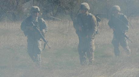 | Keywords: south dakota army national guard; guard best warrior competition outdoor surreal U.S. Army Staff Sgt. Steven Zubko, 2nd Battalion, 196th Regiment (Regional Training Institute), Staff Sgt. Bjorn Henstein, Joint Force Headquarters, and Sgt. Shawn Hulbert, 740th Transportation Company, walk through a smoke-filled training lane during day two of the South Dakota Army National Guard’s Best Warrior Competition, April 21, 2016, at Camp Rapid, Rapid City, S.D. The Best Warrior Competition will conclude April 22 and will name the SDARNG Soldier of the Year and the SDARNG Non-Commissioned Officer of the Year. (U.S. Army National Guard photo by 1st Lt. Chad Carlson/Released) U.S. Army Staff Sgt. Steven Zubko, 2nd Battalion, 196th Regiment (Regional Training Institute), Staff Sgt. Bjorn Henstein, Joint Force Headquarters, and Sgt. Shawn Hulbert, 740th Transportation Company, walk through a smoke-filled training lane during day two of the South Dakota Army National Guard’s Best Warrior Competition, April 21, 2016, at Camp Rapid, Rapid City, S.D. The Best Warrior Competition will conclude April 22 and will name the SDARNG Soldier of the Year and the SDARNG Non-Commissioned Officer of the Year. (U.S. Army National Guard photo by 1st Lt. Chad Carlson/Released) |