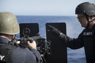 | Keywords: mediterranean sea mediterraneansea engineering uss porter (ddg 78) ussporterddg78 destroyer m240 .50-caliber machine gun 50calibermachinegun crew-served crewserved 160425-N-FQ994-239 MEDITERRANEAN SEA (April 25, 2016) Gunner's Mate 2nd Class James Forbuss, from Fenton, Missouri, right, instructs Fire Controlman 3rd Class Spencer Bagwell, from Kingsmountain, North Carolina, during .50-caliber machine gun crew-served weapons training aboard USS Porter (DDG 78) April 25, 2016. Porter, an Arleigh Burke-class guided-missile destroyer, forward-deployed to Rota, Spain, is conducting a routine patrol in the U.S. 6th Fleet area of operations in support of U.S. national security interests in Europe. (U.S. Navy Photo by Mass Communication Specialist 3rd Class Robert S. Price/Released) 160425-N-FQ994-239 MEDITERRANEAN SEA (April 25, 2016) Gunner's Mate 2nd Class James Forbuss, from Fenton, Missouri, right, instructs Fire Controlman 3rd Class Spencer Bagwell, from Kingsmountain, North Carolina, during .50-caliber machine gun crew-served weapons training aboard USS Porter (DDG 78) April 25, 2016. Porter, an Arleigh Burke-class guided-missile destroyer, forward-deployed to Rota, Spain, is conducting a routine patrol in the U.S. 6th Fleet area of operations in support of U.S. national security interests in Europe. (U.S. Navy Photo by Mass Communication Specialist 3rd Class Robert S. Price/Released) |