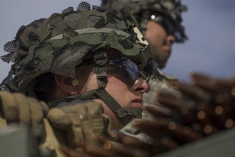 | Keywords: joint base elmendorf-richardson; alaska; paratroopers; airborne; jointbaseelmendorfrichardsonalaskaparatroopersairborne joint base elmendorf-richardson jointbaseelmendorfrichardson alaska usa joint base elmendorf-richardson; alaska; paratroopers; airborne; jber; us army; us army alaska; usarpac; us army pacific; m2; machinegun jointbaseelmendorfrichardsonalaskaparatroopersairbornejberusarmyusarmyalaskausarpacusarmypacificm2machinegun Spc. Dillon Weitzel, assigned to Apache Troop, 1st Squadron (Airborne), 40th Cavalry Regiment, 4th Brigade Combat Team (Airborne), 25th Infantry Division, U.S. Army Alaska, waits for the order to fire during an M2 .50 Caliber, Heavy Barrel, Flexible, Machine Gun range on Joint Base Elmendorf-Richardson, Alaska, Tuesday, April 26, 2016. The M2 is a heavy machine gun that was designed in 1918, has been in service since 1933, is manufactured for use by the United States and its allies and is commonly referred to as the "Ma Deuce." The M2 has been in production longer than any other machine gun. (U.S. Air Force photo/Justin Connaher) Spc. Dillon Weitzel, assigned to Apache Troop, 1st Squadron (Airborne), 40th Cavalry Regiment, 4th Brigade Combat Team (Airborne), 25th Infantry Division, U.S. Army Alaska, waits for the order to fire during an M2 .50 Caliber, Heavy Barrel, Flexible, Machine Gun range on Joint Base Elmendorf-Richardson, Alaska, Tuesday, April 26, 2016. The M2 is a heavy machine gun that was designed in 1918, has been in service since 1933, is manufactured for use by the United States and its allies and is commonly referred to as the "Ma Deuce." The M2 has been in production longer than any other machine gun. (U.S. Air Force photo/Justin Connaher) |