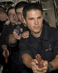 | Keywords: uss porter (ddg 78) ussporterddg78 destroyer srf-b srfb security reation force basic securityreationforcebasic 9m groupshot people indoor 160504-N-FQ994-025 MEDITERRANEAN SEA (May 4, 2016) Gunner's Mate Seaman William Kelly, from Cincinnati, leads a team of Sailors aboard USS Porter (DDG 78) during security reaction force basic (SRF-B) training May 4, 2016. Porter, an Arleigh Burke-class guided-missile destroyer, forward-deployed to Rota, Spain, is conducting a routine patrol in the U.S. 6th Fleet area of operations in support of U.S. national security interests in Europe. (U.S. Navy Photo by Mass Communication Specialist 3rd Class Robert S. Price/Released) 160504-N-FQ994-025 MEDITERRANEAN SEA (May 4, 2016) Gunner's Mate Seaman William Kelly, from Cincinnati, leads a team of Sailors aboard USS Porter (DDG 78) during security reaction force basic (SRF-B) training May 4, 2016. Porter, an Arleigh Burke-class guided-missile destroyer, forward-deployed to Rota, Spain, is conducting a routine patrol in the U.S. 6th Fleet area of operations in support of U.S. national security interests in Europe. (U.S. Navy Photo by Mass Communication Specialist 3rd Class Robert S. Price/Released) |