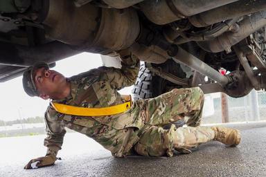 | Keywords: soldiers; army; u.s. army; u.s. army alaska; usarpac; u.s. army soldiersarmyusarmyusarmyalaskausarpacusarmy soldiers; army; u.s. army; u.s. army alaska; usarpac; u.s. army pacific; 17th cssb; 17th combat sustainment support battalion; command maintenance; pmcs; soldiersarmyusarmyusarmyalaskausarpacusarmypacific17thcssb17thcombatsustainmentsupportbattalioncommandmaintenancepmcs Army Staff Sgt. Rudy Flores, assigned to the 17th Combat Sustainment Support Battalion, U.S. Army Alaska, performs command maintenance, and Preventive Maintenance Checks and Services on one of his unit's vehicles, Monday, May 9, 2016. A decisively executed command maintenance program is a multi-echelon training event that focuses on various battlefield operating systems, provides feedback to the commander on the combat readiness of unit equipment, and, gives Soldiers confidence in their vehicles, weapons, and personal equipment through successful PMCS. (U.S. Air Force photo/Justin Connaher) Army Staff Sgt. Rudy Flores, assigned to the 17th Combat Sustainment Support Battalion, U.S. Army Alaska, performs command maintenance, and Preventive Maintenance Checks and Services on one of his unit's vehicles, Monday, May 9, 2016. A decisively executed command maintenance program is a multi-echelon training event that focuses on various battlefield operating systems, provides feedback to the commander on the combat readiness of unit equipment, and, gives Soldiers confidence in their vehicles, weapons, and personal equipment through successful PMCS. (U.S. Air Force photo/Justin Connaher) |