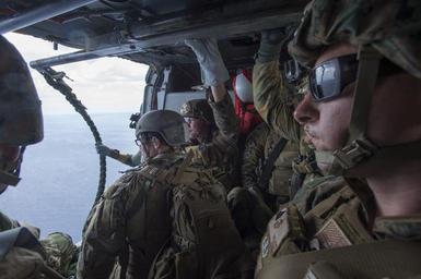 | Keywords: comcam ctf-75 ctf75 eodmu 5 eodmu5 fccp fleet combat camera pacific fleetcombatcamerapacific tricrab 2016 tricrab2016 guam U.S. Marine Corps Explosive Ordnance Disposal (EOD) technicians assigned to Explosive Ordnance Disposal Mobile Unit (EODMU) 5, 9th Engineer Support Battalion (ESB), and members of the Royal Australian Navy Clearance Diving Team, prepare to fast-rope from a MH-60S Seahawk helicopter during pouncer operations off the coast of Guam during Exercise Tricrab, May 10,2016. TRICRAB is a multinational Explosive Ordnance Disposal (EOD) exercise designed to increase skills and interoperability between the U.S. military and several partner nations. (U.S. Navy Combat Camera photo by Mass Communication Specialist 1st Class Doug Harvey) U.S. Marine Corps Explosive Ordnance Disposal (EOD) technicians assigned to Explosive Ordnance Disposal Mobile Unit (EODMU) 5, 9th Engineer Support Battalion (ESB), and members of the Royal Australian Navy Clearance Diving Team, prepare to fast-rope from a MH-60S Seahawk helicopter during pouncer operations off the coast of Guam during Exercise Tricrab, May 10,2016. TRICRAB is a multinational Explosive Ordnance Disposal (EOD) exercise designed to increase skills and interoperability between the U.S. military and several partner nations. (U.S. Navy Combat Camera photo by Mass Communication Specialist 1st Class Doug Harvey) |