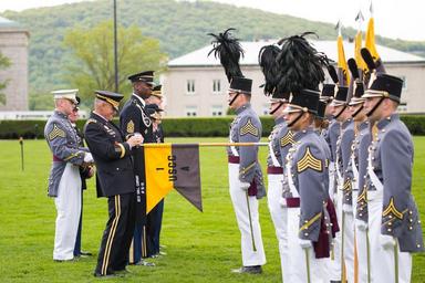 | Keywords: cadets awards review awardsreview class of 2016 classof2016 academics athletics superintendent caslen holland commandant outdoor Superintendent of the U.S. Military Academy, Lt. Gen. Robert L. Caslen, Jr., and Commandant of the U.S. Corps of Cadets, Brig. Gen. Diana Holland, present award streamers for excellence during the 2015-2016 academic year, May 18 at West Point. (U.S. Army photo by: Staff Sgt. Vito T. Bryant) Superintendent of the U.S. Military Academy, Lt. Gen. Robert L. Caslen, Jr., and Commandant of the U.S. Corps of Cadets, Brig. Gen. Diana Holland, present award streamers for excellence during the 2015-2016 academic year, May 18 at West Point. (U.S. Army photo by: Staff Sgt. Vito T. Bryant) |