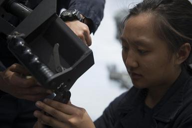 | Keywords: scat mt whitney mtwhitney lcc 20 lcc20 machine gun machinegun repair people 160524-N-KP948-006 LISBON, Portugal (May 24, 2016) - Gunner's Mate Seaman Minyan Diep, a member of the Small Craft Action Team, repairs a .50-caliber machine gun while aboard USS Mount Whitney (LCC 20), May 24, 2016. Mount Whitney, the U.S. 6th Fleet command and control ship forward deployed to Gaeta, Italy, operates with a combined crew of U.S. Navy Sailors and Military Sealift Command civil service mariners. (U.S. Navy photo by Mass Communication Specialist Seaman Alyssa Weeks/Released) 160524-N-KP948-006 LISBON, Portugal (May 24, 2016) - Gunner's Mate Seaman Minyan Diep, a member of the Small Craft Action Team, repairs a .50-caliber machine gun while aboard USS Mount Whitney (LCC 20), May 24, 2016. Mount Whitney, the U.S. 6th Fleet command and control ship forward deployed to Gaeta, Italy, operates with a combined crew of U.S. Navy Sailors and Military Sealift Command civil service mariners. (U.S. Navy photo by Mass Communication Specialist Seaman Alyssa Weeks/Released) |